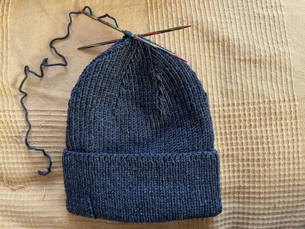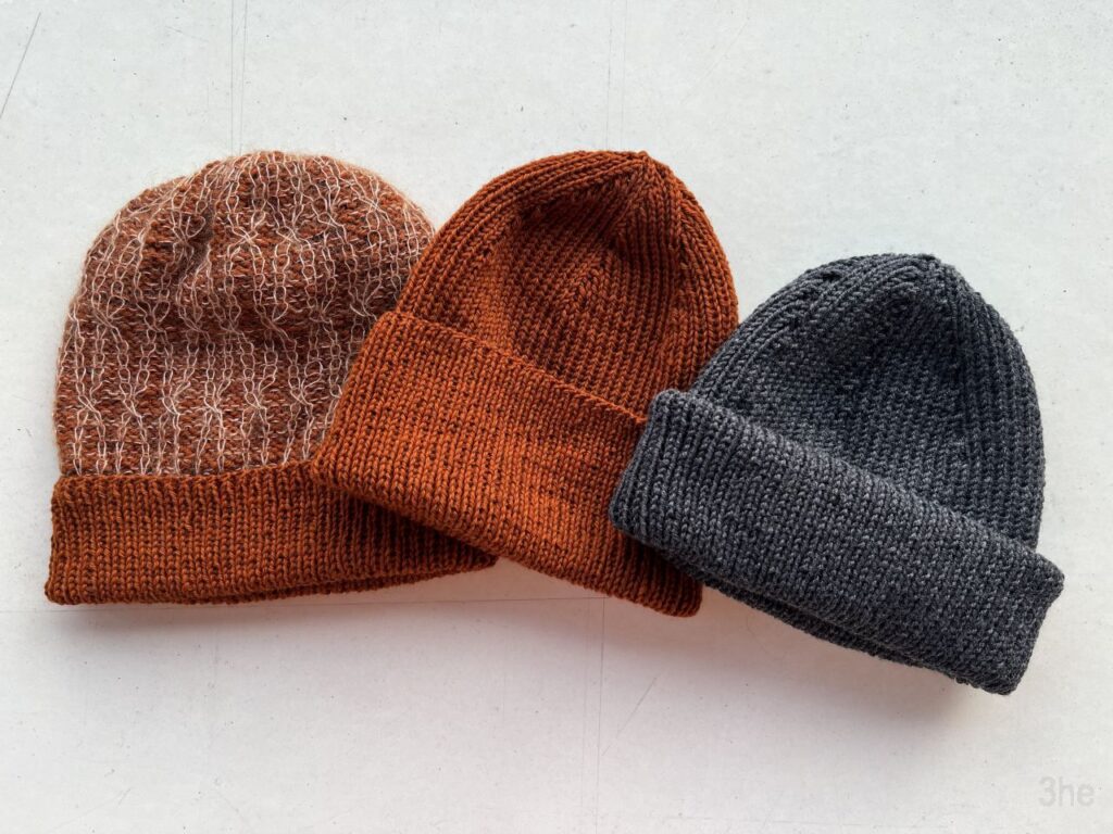 In Japan sind alle mit so schlichten Rippenmützen mit Umschlag herumgelaufen, da dachte ich mir, das kann ich auch, und es gibt da doch bei Purl Soho eine Anleitung, die ich vor Jahren schon öfter mal gestrickt hatte…