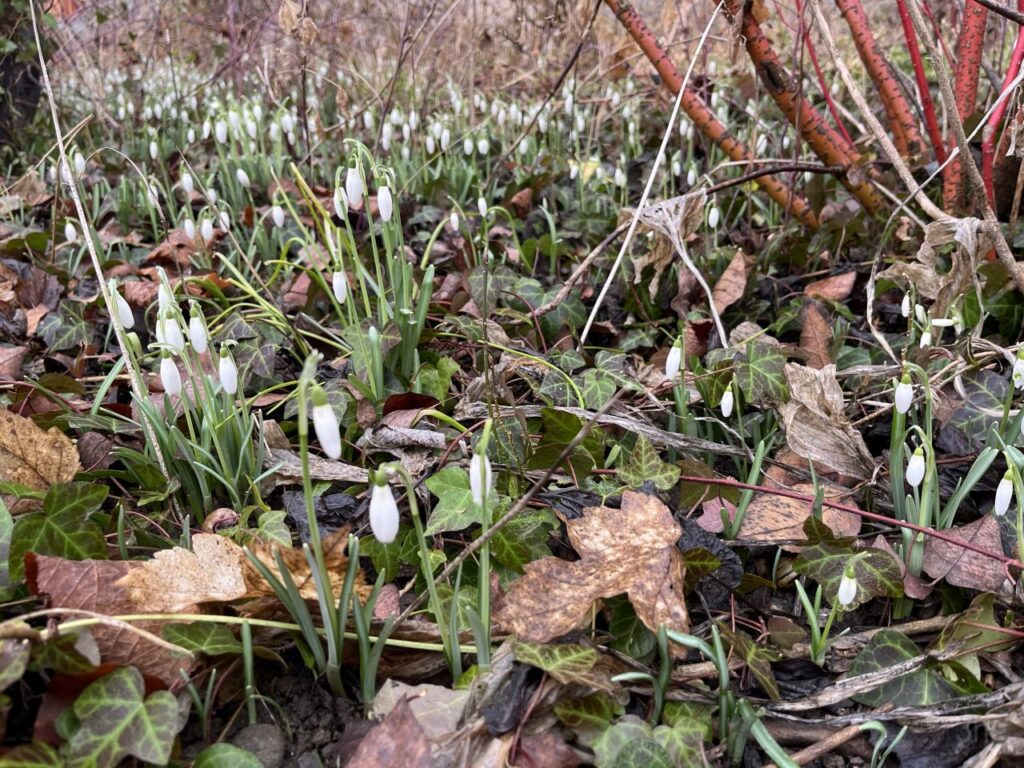 Der Kater ist gefüttert und braucht noch eine Kuschelrunde. Ich genieße den morgendlichen Milchkaffee, bevor ich mich aufs Fahrrad schwinge und ins Büro radle.Vor der Haustür spitzen die Schneeglöckchen bereits aus der Erde.