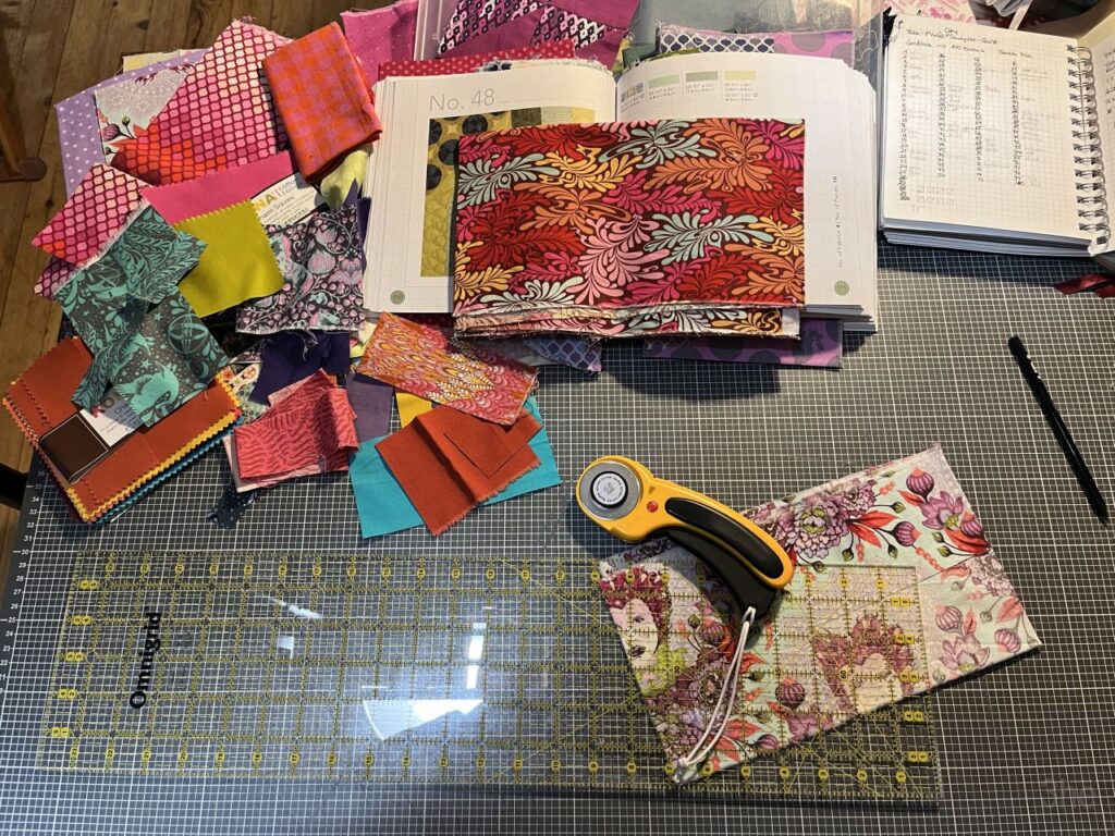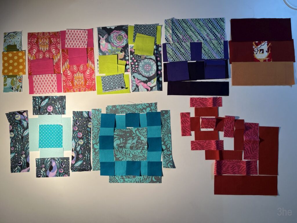 Dann verkrümele ich mich noch ein bisschen ins Nähzimmer. Ich habe in den letzten freien Tagen, statt dringend benötigte Pyjamas zu nähen, endlich mal wieder ein bisschen Patchwork gemacht. Und bin so richtig darin versunken. Es sind etliche weitere Patches für den City Sampler Quilt von Tula Pink entstanden. Ein Muster- und Farbenrausch ohnegleichen.