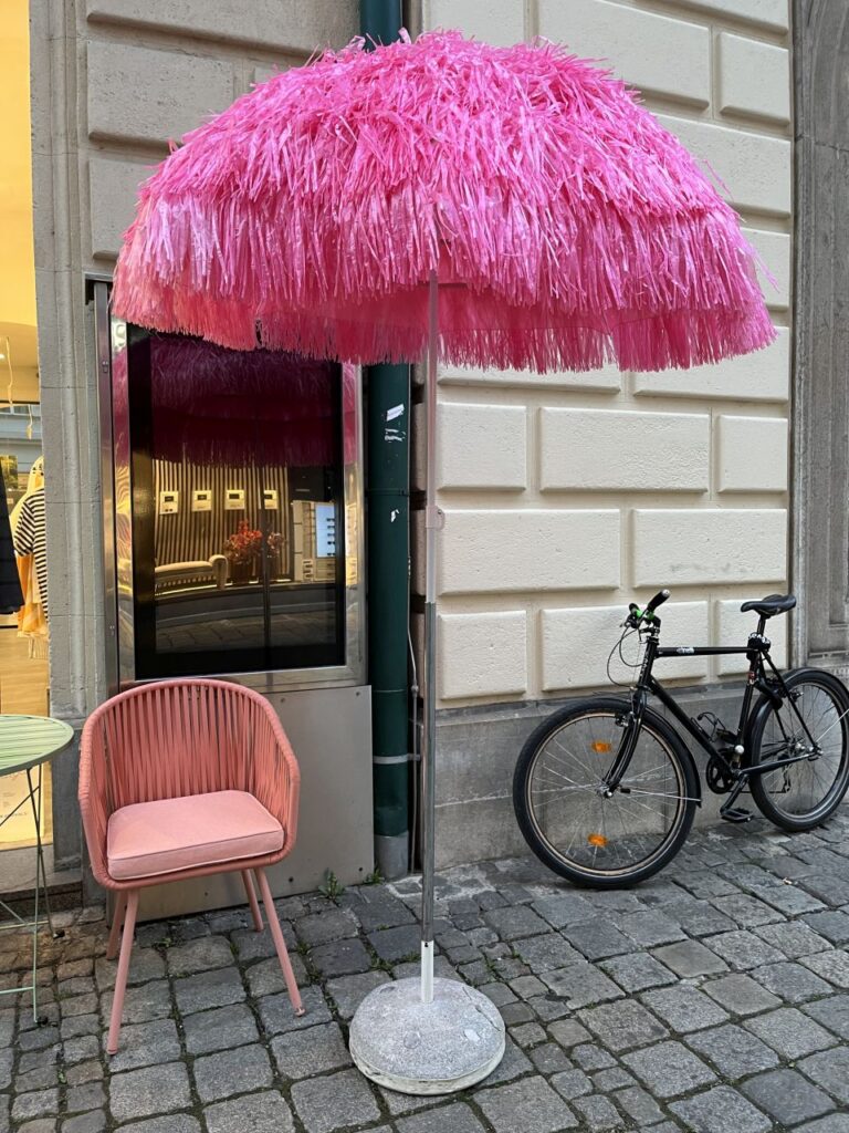 Und der Sonnenschirm in Pink ist mal eine Ansage, …hm, so was auf dem Balkon (wobei ich Pink nicht nehmen würde, aber gibt es sicher auch in anderen Knall Farben)