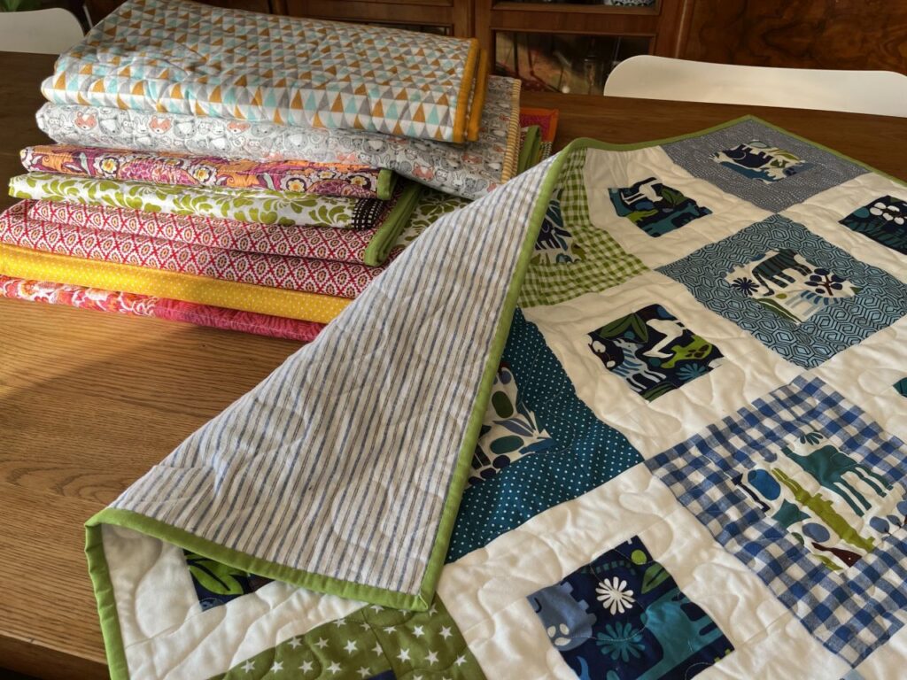 Zum späten Morgenkaffee gab es heute Reisevorbereitung. Am 21. geht es los, und ganz unvorbereitet möchte ich auch nicht sein. Der Beste hat bereits alle Stationen und Unterkünfte durchgeplant und gebucht, so dass ich nur mehr gezielt die anvisierten Orte durchlesen muss. Wer uns begleiten möchte, dort am Reiseblog wird es ab etwa 22.10. die Beiträge dazu geben.Die Sofakissen wurden bereits passend in herbstfarbene Stoffe von der letzten Japanreise gehüllt.Kater Kasimir holt sich noch Kuscheleinheiten, solange es noch geht. Für ihn ist während unseres Urlaubs bestens gesorgt, auch das Haus wird in der Zeit nicht gänzlich verlassen sein. Trotzdem genieße auch ich die Kuschelzeit mit dem alten Miezekater.Zum Fertigstellen der Babydecke setze ich mich dann allerdings auf die Terrasse in die Sonne. Während der Beste im Garten werkelt, nähe ich den letzten halben Meter des Binding auf der Gegenseite von Hand an.Fertig. Noch schnell ein paar Fotos, bevor die Decke morgen übergeben wird.Die letzten Sonnenstrahlen genießen und noch schnell die tolle Herbstfärbung des Schneeballs festhalten. (Viburnum opulus Roseum, wenn ich mich richtig an den Sortennamen am Etikett erinnere)Draußen geht langsam die Sonne unter und es wird kühl. Während ich den Bund an den neu genähten Hosenrock stecke und schließlich festnähe, bereitet der Beste das Abendessen vor.Kürbis würfeln, im Rohr weich braten und als Fülle zerstampfen habe ich genauso verpasst wie die Herstellung des Nudelteigs. Immerhin komme ich gerade richtig, als Omas Nudelmaschine zum Einsatz kommt, um die Platten für die Ravioli zu machen.Ich bin jedesmal wieder fasziniert vom Ravioli machen.Die Ravioli sind fertig, nun werden sie gekocht.Ich nutze die Kochzeit, um die beiden Knopflöcher in den Bund zu machen und die weiten Hosenbeine zu säumen. Den fertigen Hosenrock wird es beim nächsten MeMadeMittwoch zu sehen geben.Essen ist fertig. Und es schmeckt genauso toll wie es aussieht.