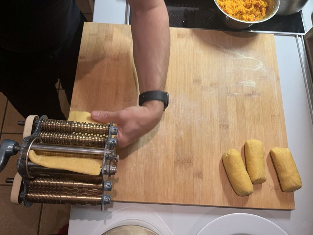 Der Beste jammert zwar immer wieder über die sehr kleine Nudelmaschine meiner Oma, aber er benutzt sie tapfer weiter. Und die Randabschnitte der Ravioli werden getrocknet und peppen dann meist zeitnah eine Minestrone auf. Was bin ich froh, einen Mann zu haben der gerne kocht 🙂