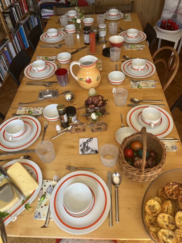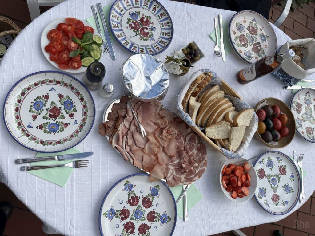 Das Wetter hielt, so konnten wir am Karsamstag die Osterjause im Freien genießen. Die paar vereinzelten Regentropfen haben es nicht geschafft, uns die Freude am draußen Essen zu vermiesen.