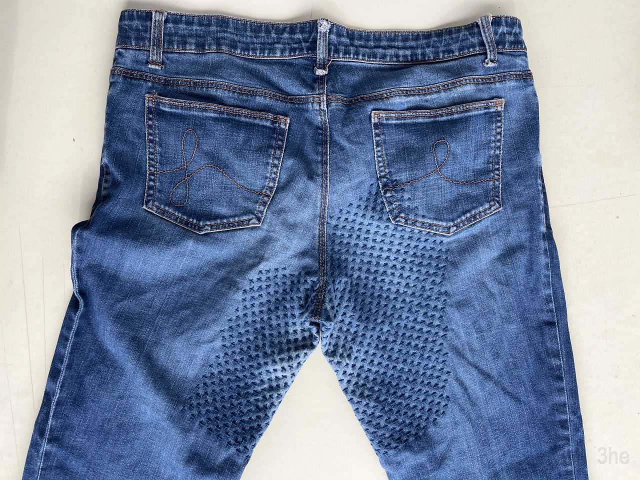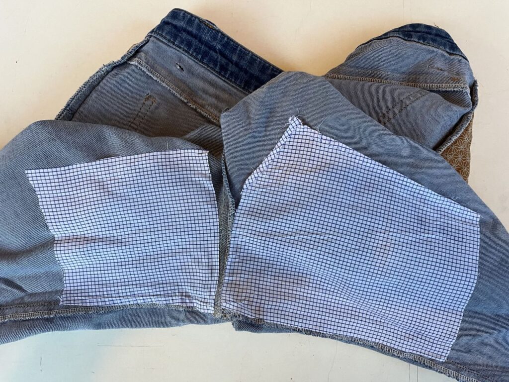 Jede/r Radfahrer/in kennt das: Die Hosen werden im oberen Schenkelbereich durchgewetzt. Beim einen Material geht es schneller, das andere Material hält länger durch. Leinenhosen überstehen keinen Sommer, meist nicht mal zwei Monate, und sie sind durch. Baumwollhosen aus Popeline oder Canvas halten länger. Jeans, es sei denn es ist Leinendenim, halten eigentlich recht lange. Zumindest bei meinen selbstgenähten Jeans. Die gekauften (meist Levis) hatten auch immer recht schnell ein Loch. Allerdings auf und direkt neben der Kappnaht, der Stoff selbst war im Schenkel- und Gesäßbereich eigentlich auch recht stabil. Offensichtlich stehen die Nähte meiner selbstgenähten Jeans nicht gar so vor, in dem Bereich ist nichts abgewetzt.