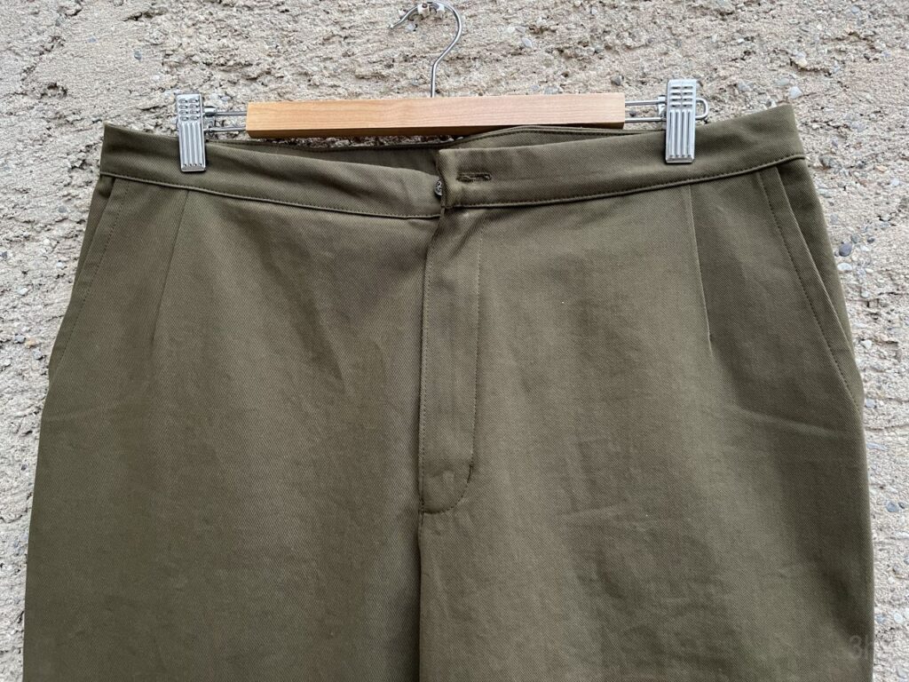 Die Gürtelschlaufen habe ich bewusst weggelassen. Der Bund ist schmäler als bei meinen Jeans. Ich trage keinen schmalen Gürtel, jedenfalls nicht bei Hosen, wozu also Gürtelschlaufen? Außerdem ist die Hose hochgeschnitten und sitzt durch die Abnäher recht gut, ich hatte bisher nicht das Gefühl, einen Gürtel zu brauchen.