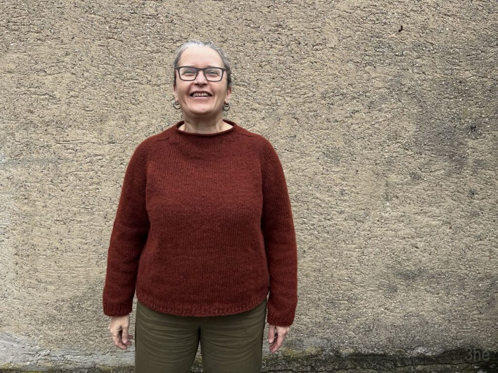 Der Pullover ist etwa 10 Minuten vor dem Fotografieren fertig geworden. Er trägt sich sehr angenehm, warm und leicht. Ich habe ihn nach den Fotos gleich anbehalten.
