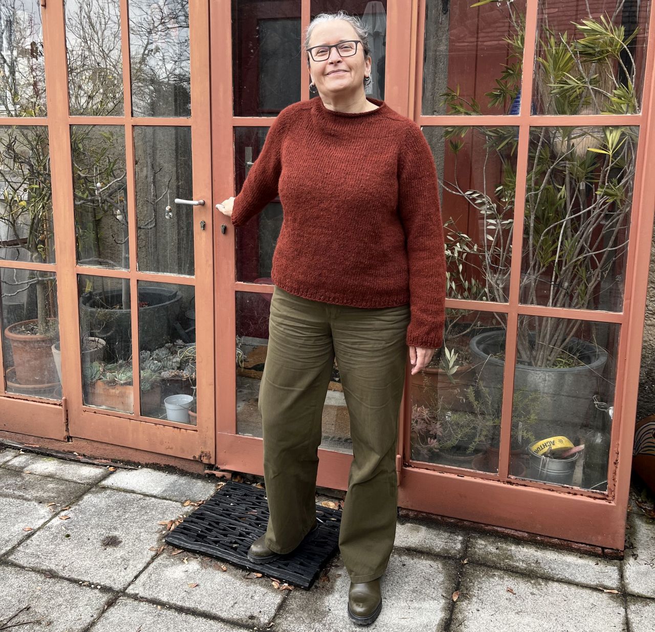 Wie Jeanette, die uns heute am MeMadeMittwoch im Februar wunderbar farblich aufeinander abgestimmt und überhaupt ganz wunderbar Rock und Jacke vorführt, zeige ich euch heute eine noch im letzten Jahr fertig gewordene Hose. Die Hose Miller Street wurde bereits Anfang Dezember 2025 fertig, und sie wird seither gerne und viel getragen. Wiederholungstäterin bin ich mit der Hose außerdem auch, habe ich den Schnitt Miller Street doch schon einmal genäht. Auch diese Hose wird oft getragen, die Neue hat jedoch das Potential noch öfter ausgeführt zu werden.