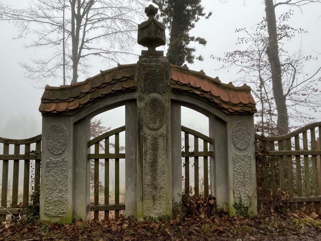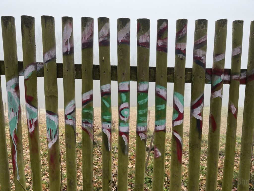 Meist ist es ein einfacher Holzzaun. Aber direkt hinter der nunmehrigen Psychiatrischen Abteilung ist die Einfriedung aufwändiger gestaltet, mit gemauerten Zaunpfosten mit Ziegeldächchen, und auch ein paar torähnlichen Gebilden. Neben einem Zaunschlupf gibt es auch eine Durchgangstür, durch die man das Gelände des LKH betreten kann.