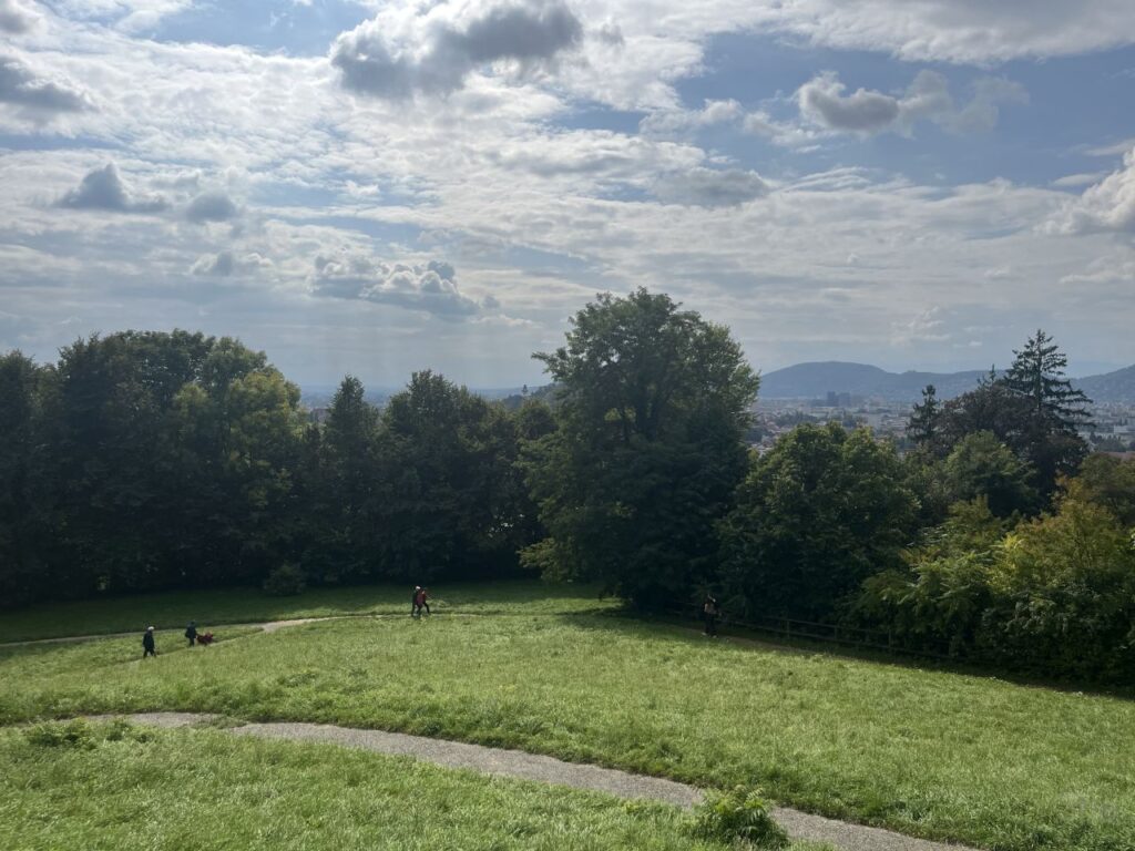 Den Monatsspaziergang im März 2023 hatten wir damals zur imposanten Ruine des ehemaligen Sommerrefektoriums der Jesuiten im Rosenhain unternommen. Und durften damals feststellen, dass die Ruine neuerdings mit einem Bauzaun umgeben war. Zweieinhalb Jahre später nun ist der Bauzaun wieder verschwunden und die Ruine keine Ruine mehr. Zum Tag des Denkmals, der in Österreich immer am letzten Sonntag im September stattfindet, wurden zwei Führungen durch das fertiggestellte Gebäude angeboten. Diese Gelegenheit habe ich natürlich genutzt, schließlich hat es mich interessiert, wie das Gebäude von innen aussieht. Und weil ich vermutlich nicht die einzige bin, die interessiert was aus der ehemaligen Ruine geworden ist, führt der Monatsspaziergang im Oktober 2025 nun ebenfalls zum ehemaligen Sommerrefektorium der Jesuiten.