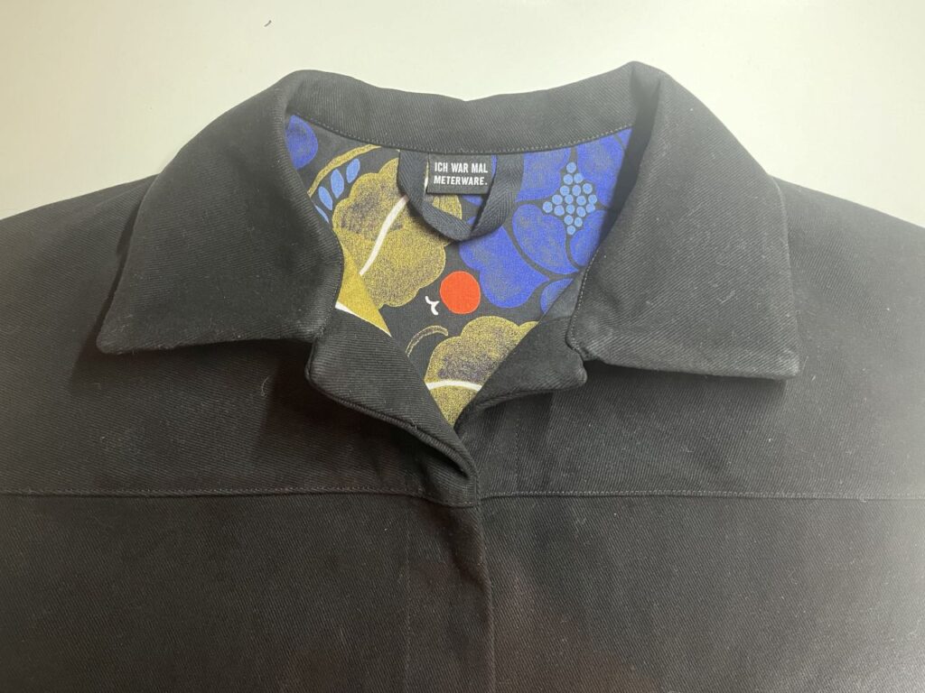 • Material: ca. 1,5m Gabardine aus 100% Baumwolle in Schwarz von Atelier Brunette, gekauft in der Maschenwerkstatt; Innenfutter Schulterpasse Marimekko, vor vielen Jahren im schon lange nicht mehr vorhandenen Marimekko-Shop Graz gekauft; Knöpfe Hirt, Graz