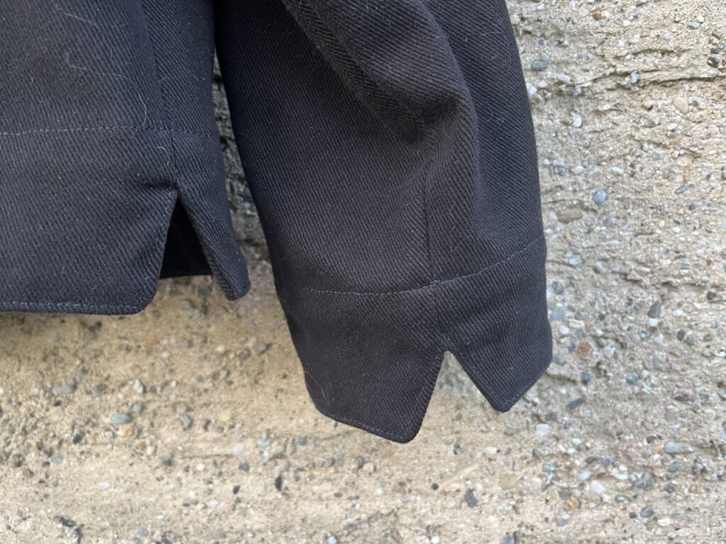 Die kleinen Seitenschlitze an Seitennaht und Ärmelnaht nochmal im Detail. Sie geben dem an sich sehr schlichten und geradlinigen Schnitt genau die benötigte kleine Prise Pepp. Und der Gabardine Twill sieht zwar sehr dick und steif aus, ist allerdings angenehm weich und ließ sich auch sehr angenehm vernähen.