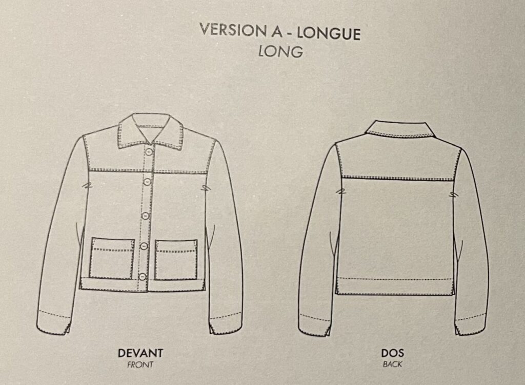 La Veste ist eine ungefütterte Jacke im Workwear Stil. Es gibt 2 Längen, eine kurze Version und eine etwas längere Version. Ich habe mich für die längere Version entschieden, das war für meine Größe von 1,70m die richtige Entscheidung. Die kurze wäre mir zu kurz gewesen. Bis auf die Länge gibt es keine Unterschiede zwischen den beiden Varianten. Beide haben zwei aufgesetzte Taschen an der Bundkante. Und beide haben Schlitze an den Seitennähten und an den Ärmelnähten. Die Schlitze, die genau diesen Schnitt für mich zu etwas Besonderem machen.